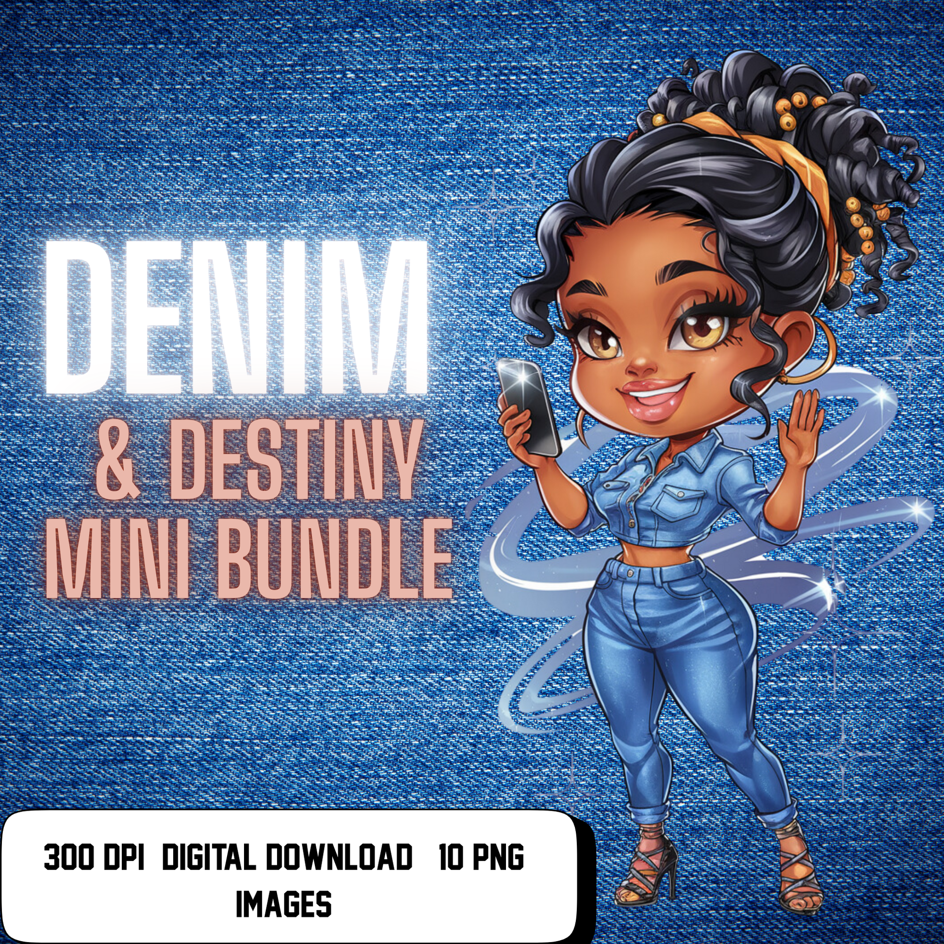 Denim & Destiny Mini Bundle is a curated digital character collection designed to capture everyday confidence, movement, and main character energy. This bundle features stylish, expressive characters dressed in modern denim looks that reflect real life moments coffee runs, work mode, self care, content creation, and boss moves.